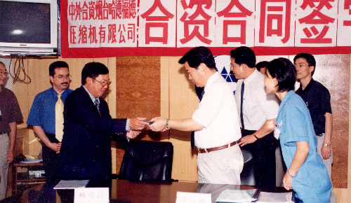 2001年,與馬來西亞頓漢布什控股有限公司合資成立“煙臺(tái)哈特福德壓縮機(jī)有限公司”。